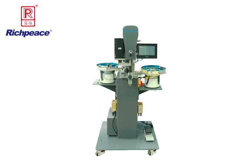 3.可上下同時(shí)自動(dòng)送料、腳踏開(kāi)關(guān)控制,給予快速調(diào)整對(duì)鈕鉚合,操作安全,比人工快3-6倍,從而提高產(chǎn)量和質(zhì)量