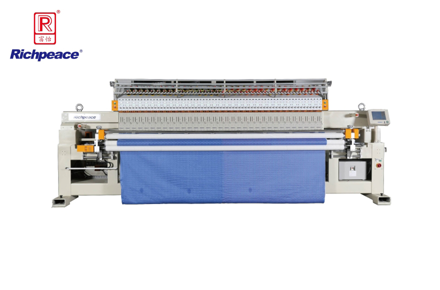 2、采用小針距雙針絎繡機(jī)頭,最小針距50.8mm(2");雙針桿獨(dú)立控制或手動控制,自由激活、鎖定;可根據(jù)生產(chǎn)要求自主快速地實(shí)現(xiàn)針距任意隔頭的切換,滿足復(fù)雜組合絎縫、絎繡花型的高效生產(chǎn)要求。