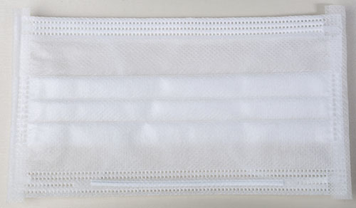 1.面層、濾層(或雙濾層) 、底層三卷或四卷面料自動對齊入料,雙邊對稱超聲連續壓邊, 經連續滾輪壓邊切斷后,分流到兩個工位進行耳帶焊接以提高生產效率,焊完耳帶和包邊切斷后自動計數碼堆。