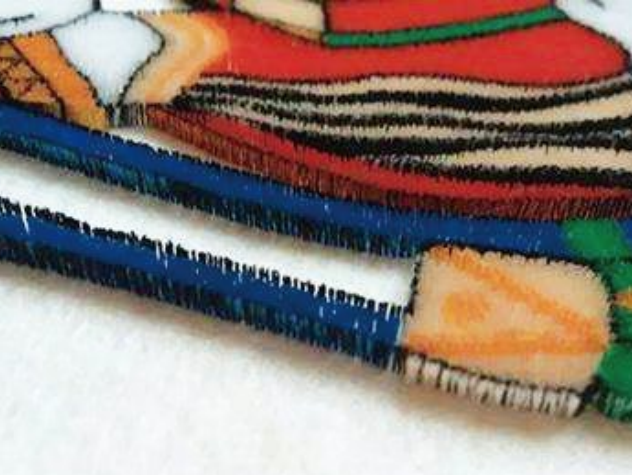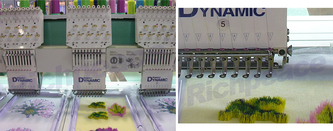 3、根據(jù)花版要求,預(yù)留不同的切線長度,創(chuàng)造出立體三維造型,繡線根根直挺,圖案清晰凸顯。